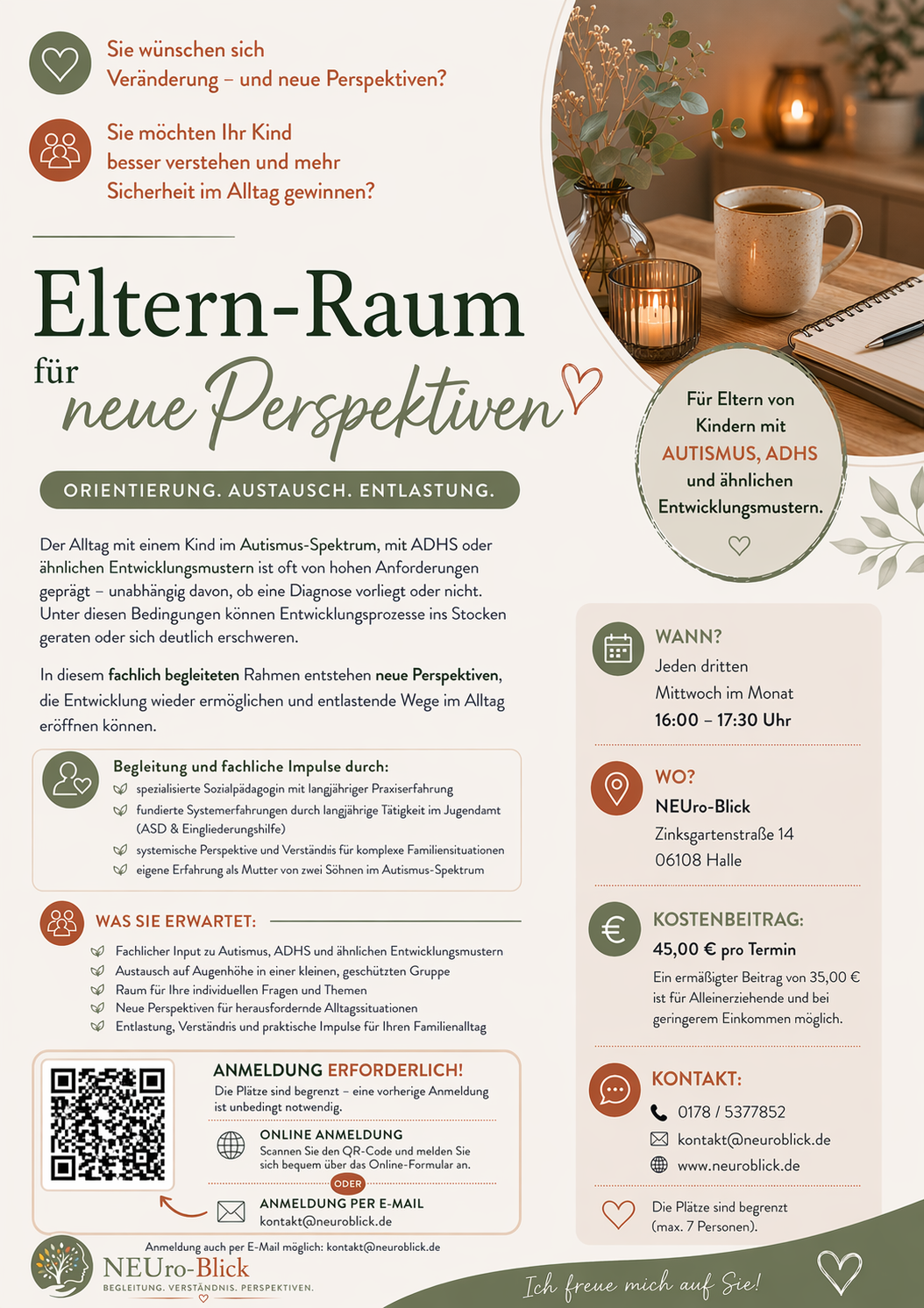 Dieses Angebot verbindet moderierten Austausch mit fachlichem Input und individueller Orientierung.
